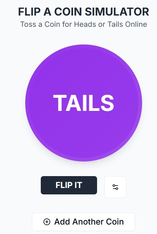 Flipacoinsimu.com is a quick and fair way to get a heads or tails result with just a click. Unlike real coins that might have a slight weight bias, our digital coin toss is truly random, giving both sides an equal 50/50 chance.