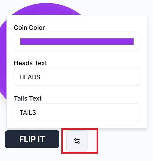 - Change Text: Customize the text on the heads and tails sides of the coin (e.g., names, products, food choices).
